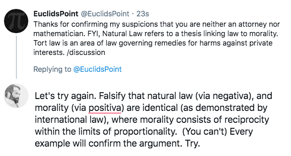Look. Legal philosophy is finished, and all philosophy relegated to choice (not truth). P-Law provides the formal logic of strictly constructed, (textual, original intent) transactional law. Sorry. Law schools teach philosophy and procedure not law. 😉 https://t.co/dQtAByxWnb