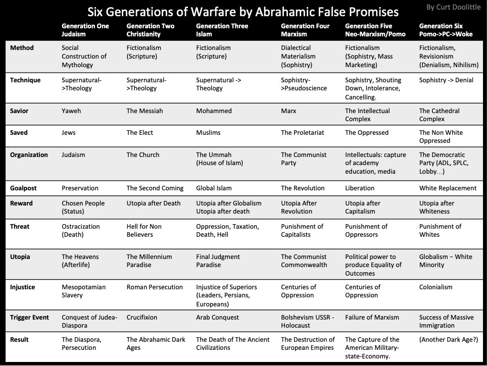 All: Pls Review and comment. Updated with ‘liberation’ theology (generation six). I could separate Neo-marxism pomo column, and I could add the ‘prophets’ row. https://t.co/1wFZjKc8mP