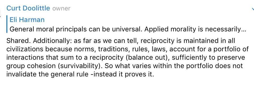 Universal moral rules, like laws of nature, because they are laws of nature, are consistent. The application of those laws varies like all applied science. This is why it appears that Groups, Classes, Individuals, vary. We don’t. We just vary in biases within the portfolio. https://t.co/kTHKECXJZj
