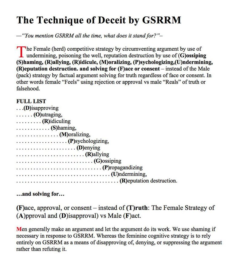 Females are social super predators and female anti-social behavior is reasonably well studied in the literature. In my work I document the female method of lying.